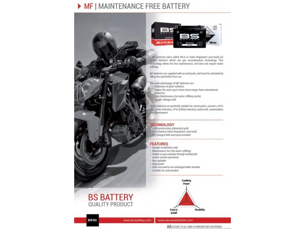 Bezúdržbová motocyklová baterie BS-BATTERY BTX20CH-BS (YTX20CH-BS)