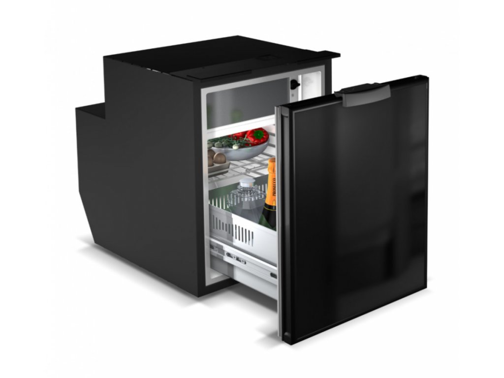 Vestavná výsuvná chladnička s pevnou chladící jednotkou. Objem chladničky je 51 litrů, z toho mrazící přihrádka má objem 3,6 litru. Praktické výsuvné provedení zaručuje snadný přístup k obsahu chladničky. Výsuvy jsou kolejnicové, nerezové. Dveře chladničky jsou vybaveny chytrým AIRLOCK systémem. Jde o systém uzavírání, který plní několik funkcí: pevné uzavření lednice unikátní montážní rámeček (není součástí dodávky, volitelné příslušenství, viz související produkty), který umožňuje zabudování chladničky se dveřmi zarovnanými s okolní plochou, nebo se dveřmi předsazenými o ca tloušťku dveří před okolní plochu oboustrané otevírání, nyní je možnost změnit směr otevírání dveří velmi snadná a rychlá ventilační pozice kliky, která zaaretuje dveře pootevřené v době, kdy chladnička není používaná Čelní panel chladničky je možné sundat a vyměnit za jiný, odpovídající designu kuchyně. O chlazení se stará hermeticky uzavřený kompresor SECOP BD35F (dříve známý pod značkou Danfoss), vybavený 12/24 VDC napájecí jednotkou s ochranou proti hlubokému vybití baterie. Standardně je chladnička dodávána s napájecím systémem SECOP 12/24V DC.Za příplatek lze objednat napájení na 110-240 VAC a 12/24 VDC (automatické rozpoznání). Viz související produkty. Technické parametry C51DW Vitrifrigo:Celkový objem: 51 litrůObjem mrazící přihrádky: 3,6 litruNapájecí napětí: DC 12-24 Volt, automatické rozpoznání, za příplatek i na 230 VVnitřní osvětlení: anoKompresor: SECOP BD35FJmenovitý příkon: 40 WIzolace: polyuretanová pěna bezfreonováRozměry vnější (š / h / v mm): 380 / 524 / 532Rozměry vnitřní ca (v / š / h mm): rozměry podrobně naleznete v galerii obrázkůHmotnost: ca 20 kgCertifikace: CE, homologaceDoplňkové parametry