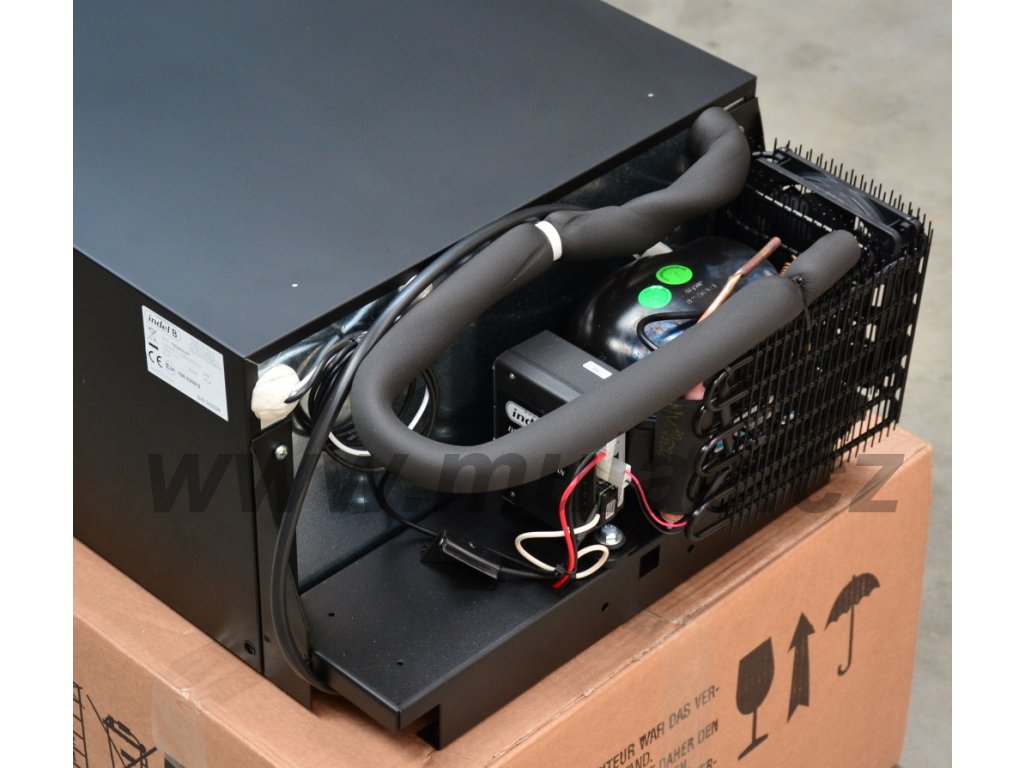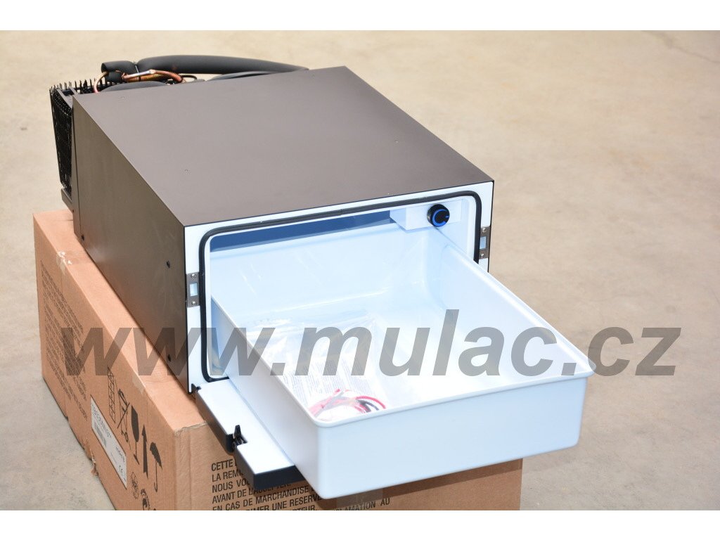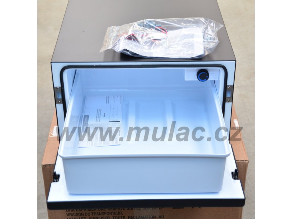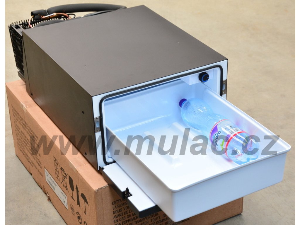 Chcete-li ušetřit cenný prostor v kabině pak můžete použít tuto chladničku, která se umísťuje pod postelí řidiče nebo jiného nízkého prostoru. S plně výsuvnou zásuvkou řidič získá snadno přístup k potravinám v lednici, celý vnitřní prostor je navíc osvětlen. Tento model autochladničky lze připevnit do autobusů, člunů, nákladních aut. Lze použít v DAF XF, MAN F2000/TGA, MB Actros, RENAULT, Premium/Magnum, SCANIA, VOLVO FH 2006, MAZ. Chladnička je vybavena hermericky uzavřeným kompresorem SECOP (dříve Danfoss), napájení 12/24V (automatická volba napětí) a mechanickým otočným termostatem. Samozřejmostí je podpěťová ochrana autobaterie proti hlubokému vybítí. Komresor je ochráněn vypnutím při naklonění kabiny a lze z chladničky sejmout a umístit například z boku chladničky. Délka trubiček pro vedení chladiva od kompresoru je ca 65 cm. Snadné ovládání manuálním termostatem. TECHNICKÉ PARAMETRYObjem: 35,5 litrůNapájecí napětí: 12 V / 24 V DCPříkon: 60 WNastavení teploty: mechanický termostat od ca 8 ° do +2 ° C při okolní teplotě do 32°CRozměry vnější (v x š x h, mm): 250 x 440 x 715Délka chladničky bez kompresorové jednotky: 550 mm, bez dveří: 51,5 cmCelkové rozměry vnitřní (v x š x h, mm): 200 x 365 x 485 Rozměry vnitřní s šuplíkem (v x š x h, mm): 195 x 345 x 460 (do šuplíku lze umístit libovolné PET lahve naležato)Hmotnost: 16 kgKompresor: Secop (DANFOSS) BD35FUpevňvací komponenty: ano, držák pro pevnou instalaci do vozu (montážní/fixační sada) součástí chladničkyPodpěťová ochrana autobaterie pro 12V i pro 24V, automatická volba napětí.Chladnička je určena pro odbornou montáž.Připojení na napájení je kabelem ca 0,6 m s faston konektory 6,3 mm, součástí balení je konektorový protikus s kabelem ca 100 cm zakončeným volnými konci, viz obr. Vyrobeno v Itálii Naše společnost je dovozcem a obchodním zastoupením společnosti Indel B v České republice. Na dovážené produkty poskytujeme záruční a pozáruční servis. Máte-li zájem o velkoobchodní spolupráci neváhejte nás kontaktovat, máme pro Vás zajímavou obchodní nabídku!Doplňkové parametry